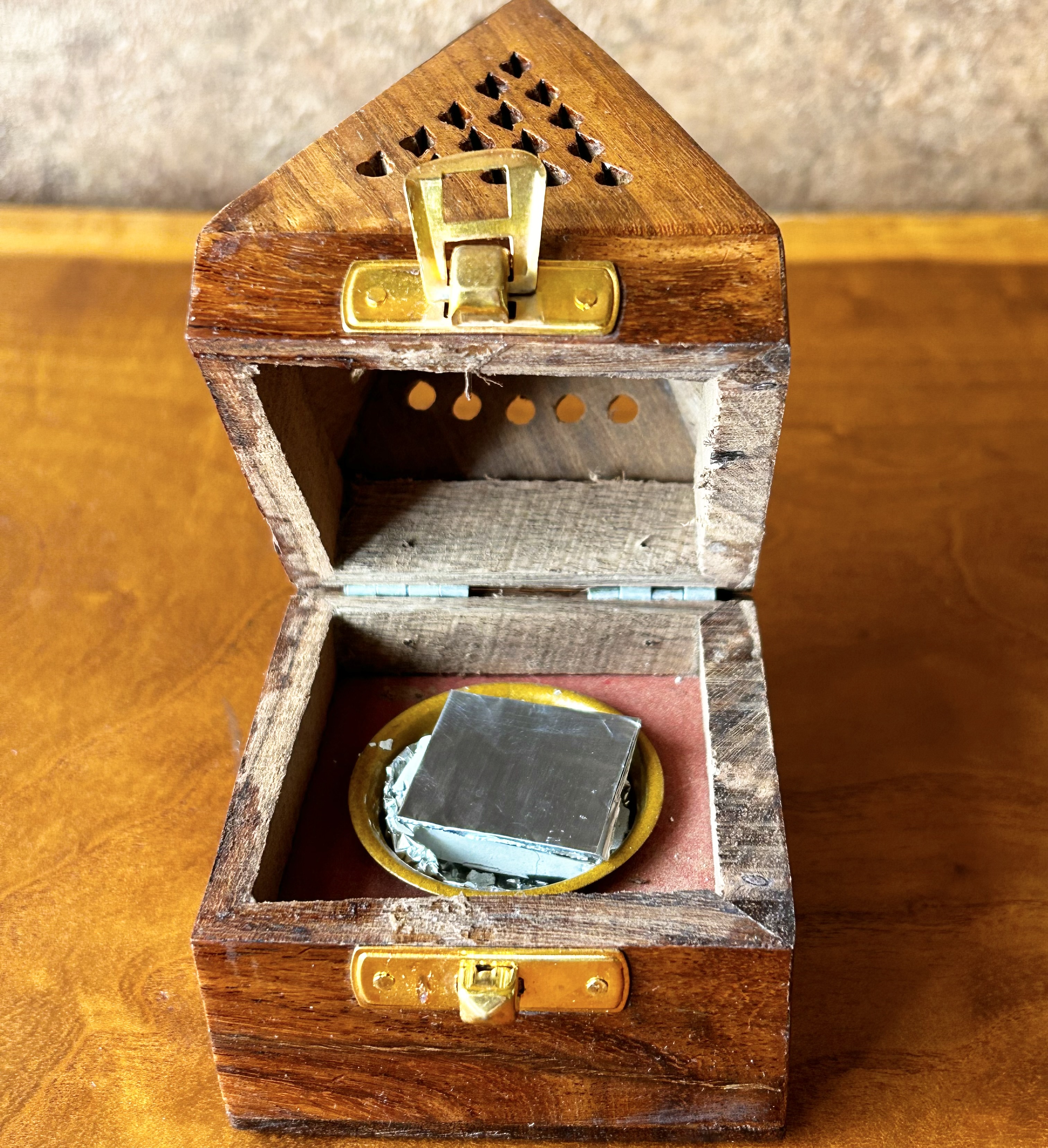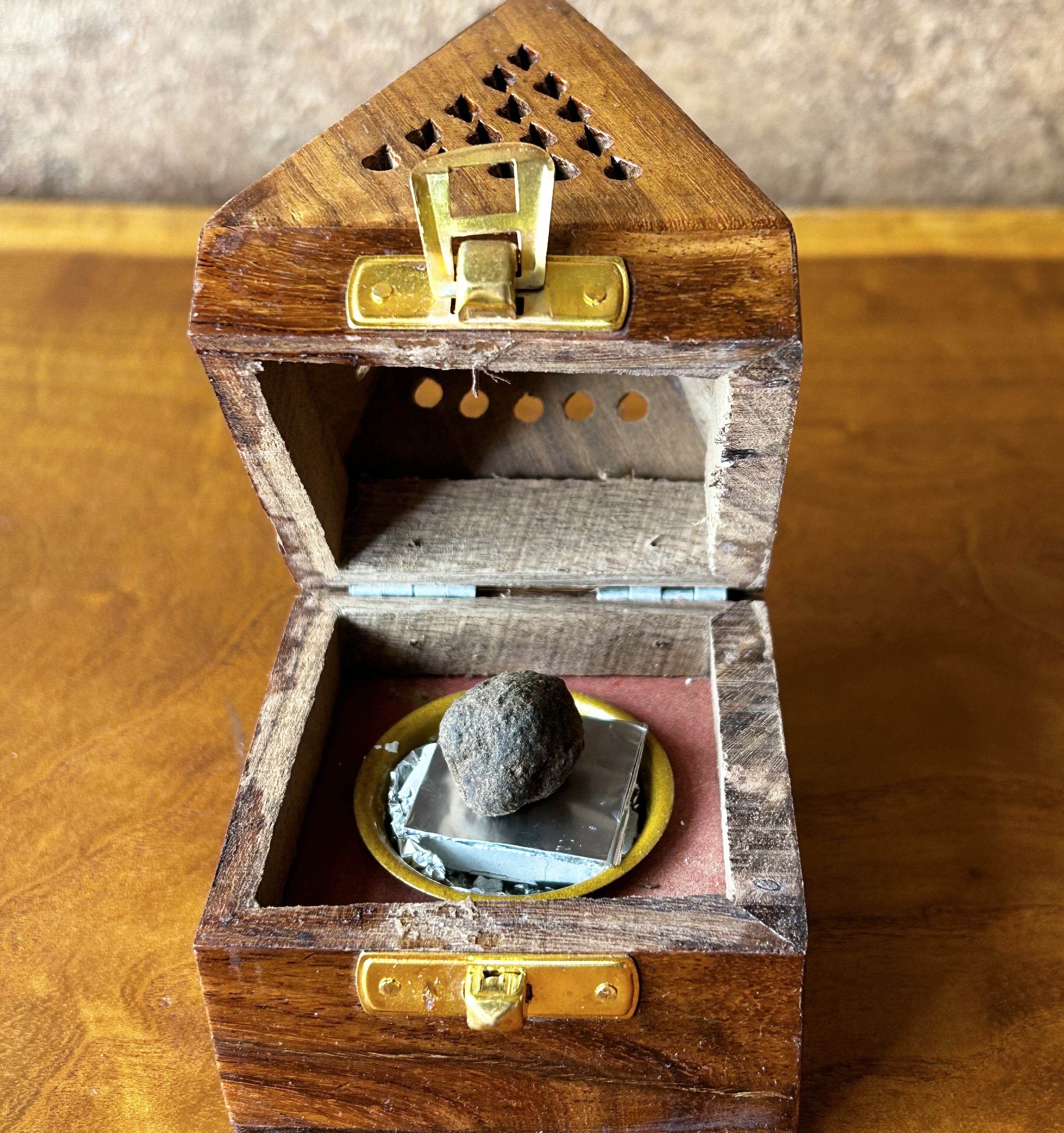 2,炭の上にアルミシートをのせ、その上にお香を置いて焚きます。